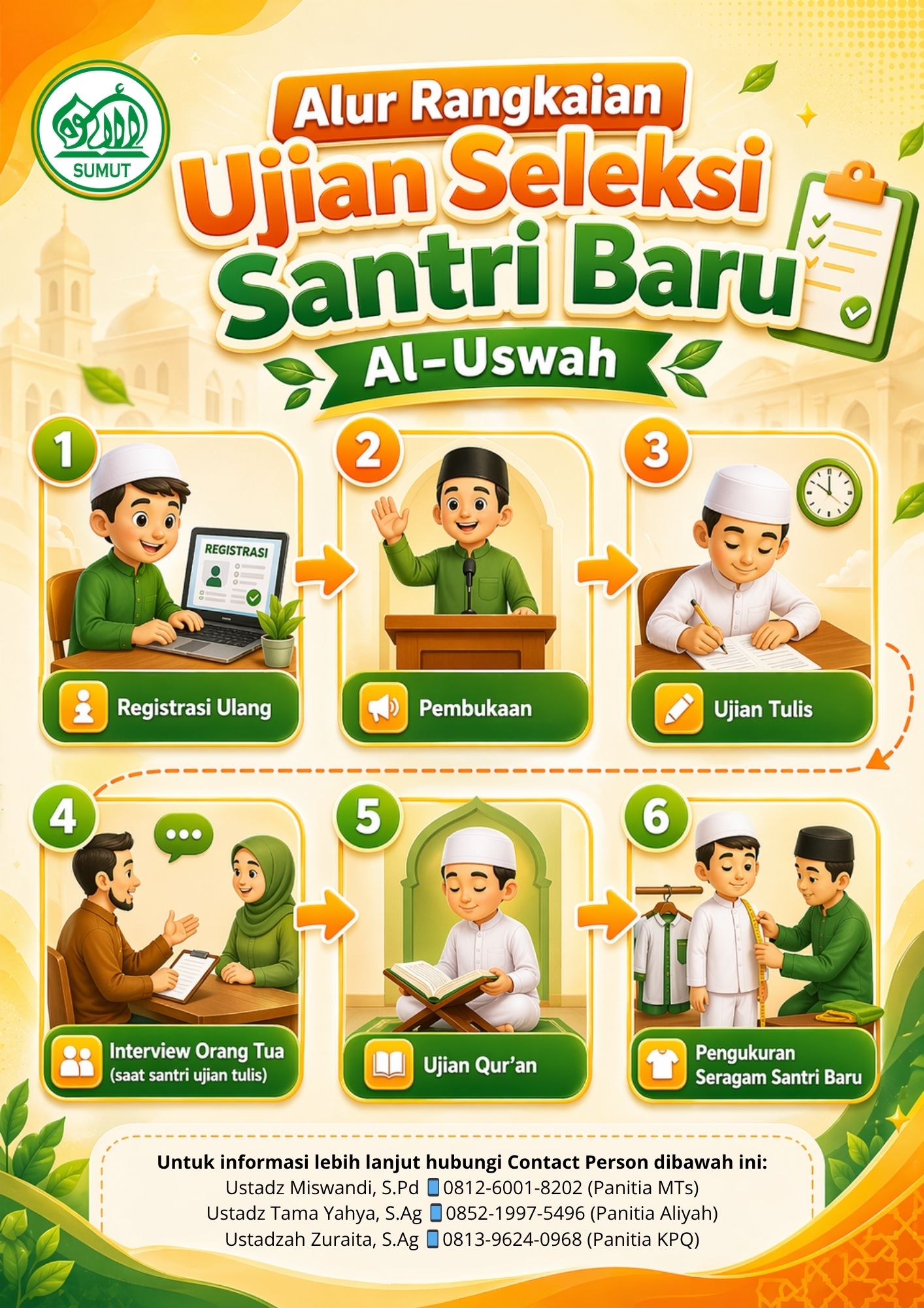 Wujudkan generasi berakhlak mulia, berilmu luas, dan siap menghadapi masa depan. Pondok pesantren Al-Uswah hadir sebagai tempat terbaik untuk menuntut ilmu agama dan umum secara seimbang. Masih terbuka peluang untuk kamu mendaftar pada gelombang II atau hadir langsung besok Ahad 26 April 2026 di Pondok Pesantren Al-Uswah, ikuti alur pelaksanaan seleksinya pada flayer tersebut. #aluswah #santri #pesantrentarbiyah #pesantrenaluswah #tahfidzquran #langkat #santriindonesia #pesantren #santriindonesia #aluswahsumut